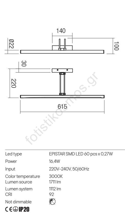 Redo 01-3470 - Φωτιστικό πίνακα LED IKON LED/16,4W/230V 61,5 cm CRI 92 λευκό | Fotisti kosmos