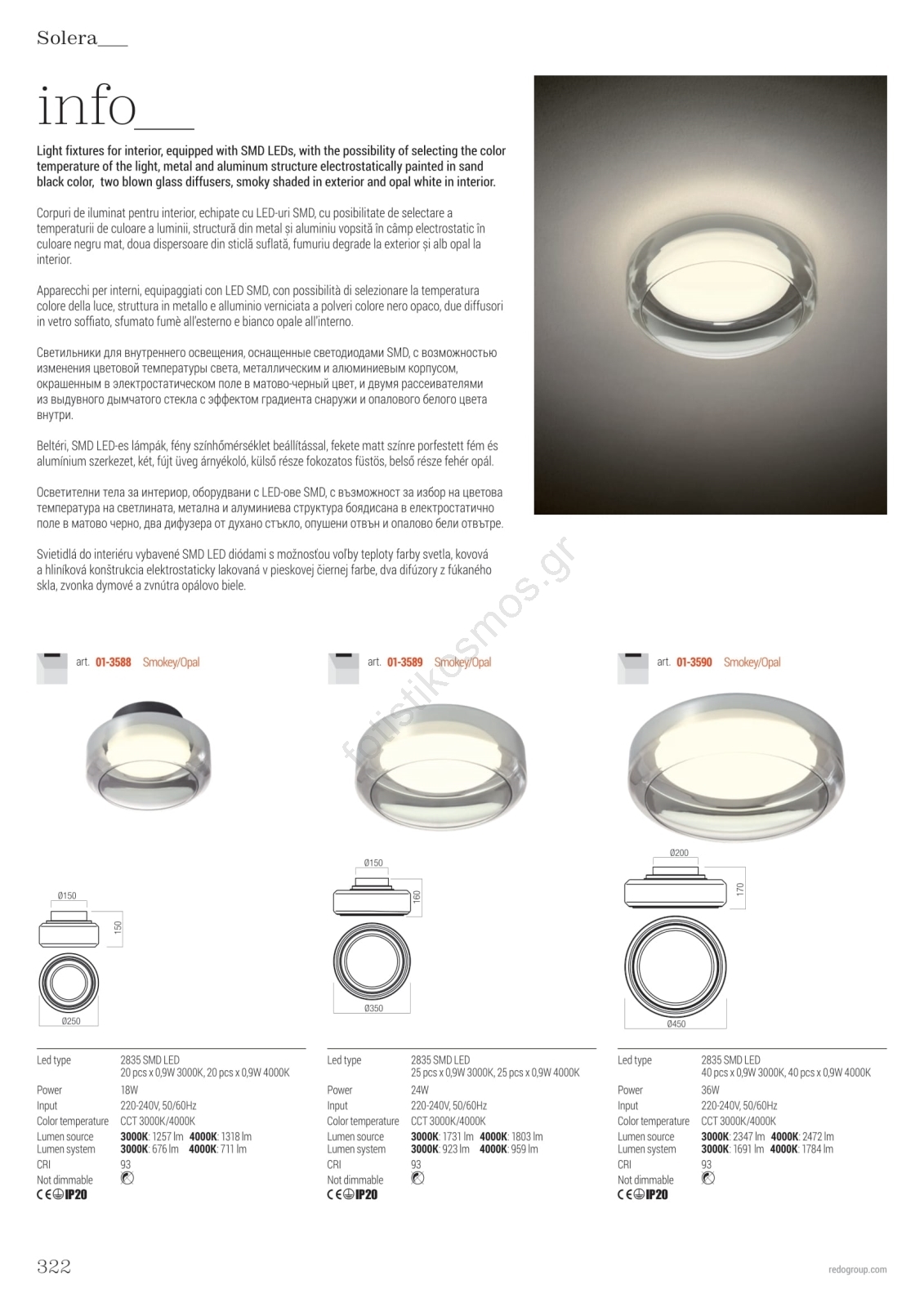 Redo 01-3590 - Φωτιστικό οροφής LED SOLERA LED/36W/230V 45 cm CRI 93 3000/4000K | Fotisti kosmos