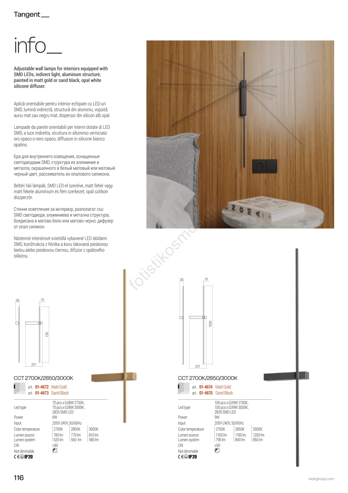 • Redo 01-4674 - Επιτοίχιο LED φωτιστικό TANGENT LED/9W/230V 2700/2850/3000K 73 cm CRI 90 χρυσό