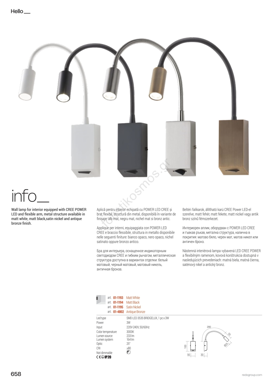 • Redo 01-1193 -Σποτ τοίχου εύκαμπτο  LED HELLO LED/3W/230V λευκό