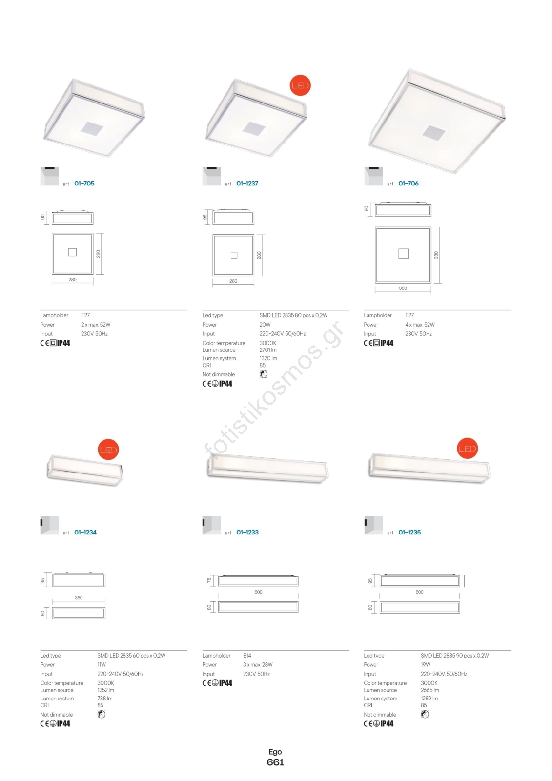 Redo 01-704 - Φωτιστικό οροφής μπάνιου EGO 1xE27/52W/230V 18x18 cm IP44 | Fotisti kosmos
