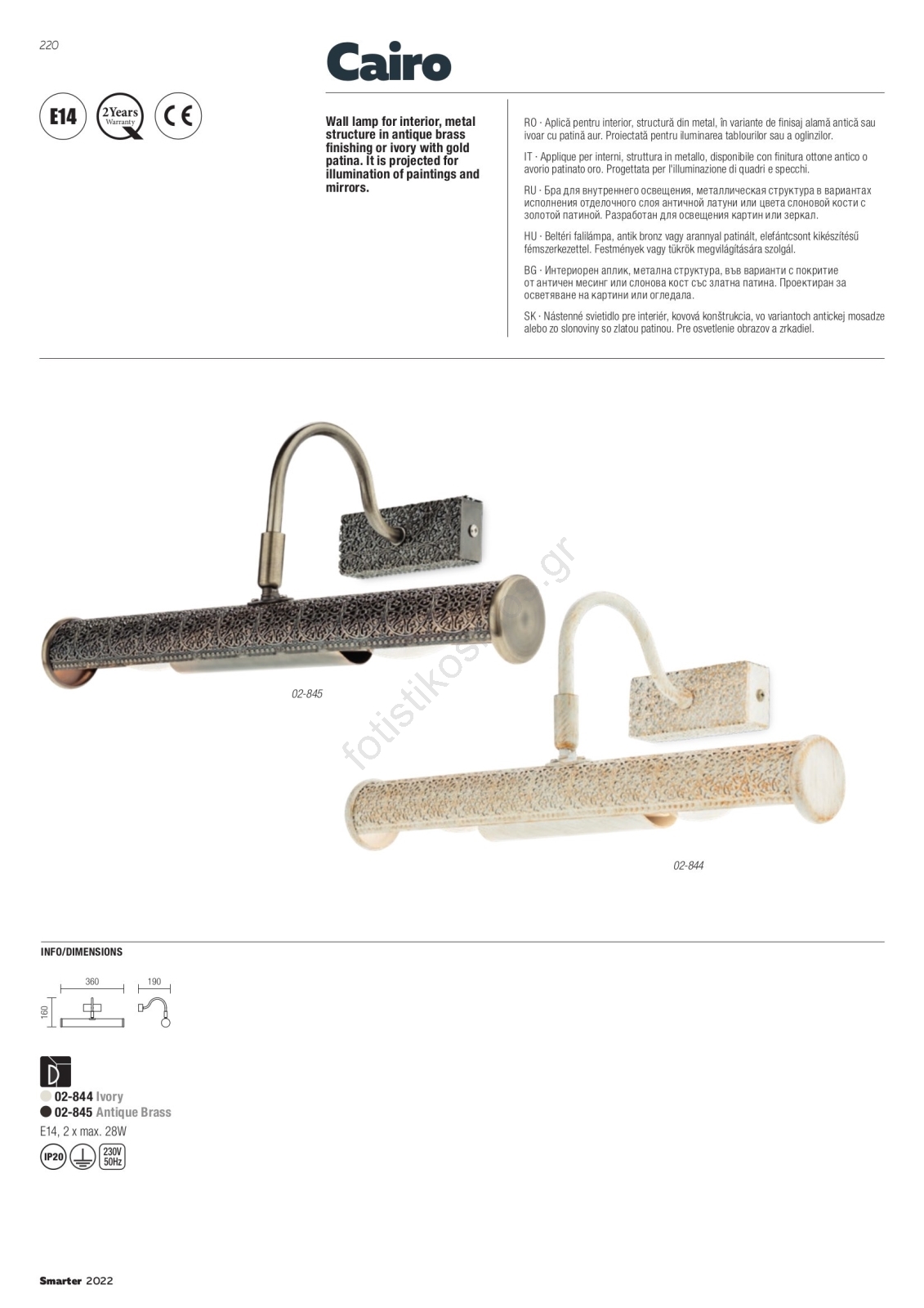 Redo 02-844 - Επιτοίχιο φωτιστικό για πίνακες CAIRO 2xE14/28W/230V 36 cm λευκό χαρακτηρίζεται από ωραίο και λειτουργικό design.  Μια λάμπα με ντουί E14 είναι κατάλληλη για το φωτιστικό. Εδώ, μπορείτε να αγοράσετε και άλλους λαμπτήρες σε συμφέρουσες τιμές. Θα αποκτήσετε μια εντυπωσιακή προσθήκη στο σπίτι σας.