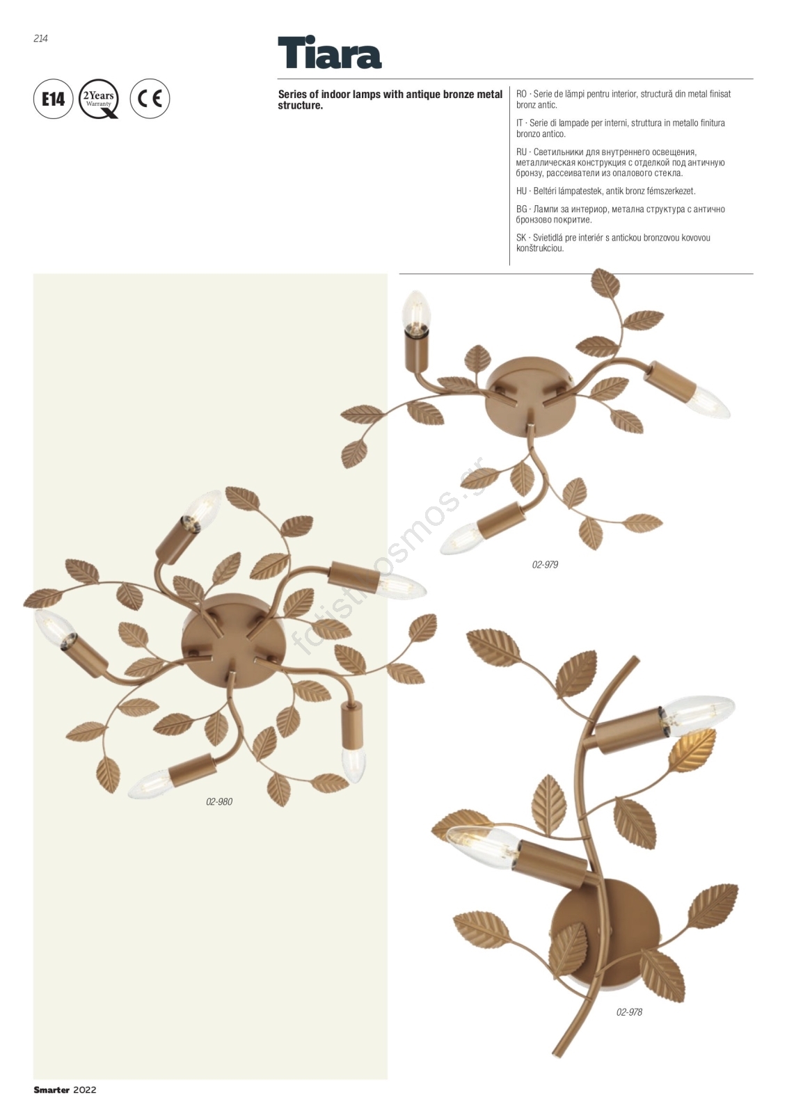 Redo 02-980 - Πλαφονιέρα οροφής TIARA 5xE14/28W/230V χαρακτηρίζεται από ωραίο και λειτουργικό design.  Μια λάμπα με ντουί E14 είναι κατάλληλη για το φωτιστικό. Εδώ, μπορείτε να αγοράσετε και άλλους λαμπτήρες σε συμφέρουσες τιμές. Θα αποκτήσετε μια εντυπωσιακή προσθήκη στο σπίτι σας.