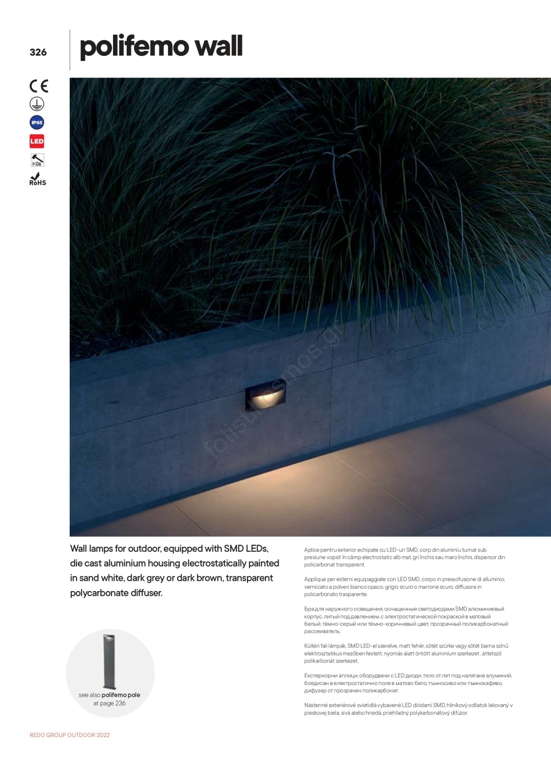 • Redo 90426 - Επιτοίχιο φωτιστικό εξωτερικού χώρου LED POLIFEMO LED/8W/230V IP65 ανθρακί