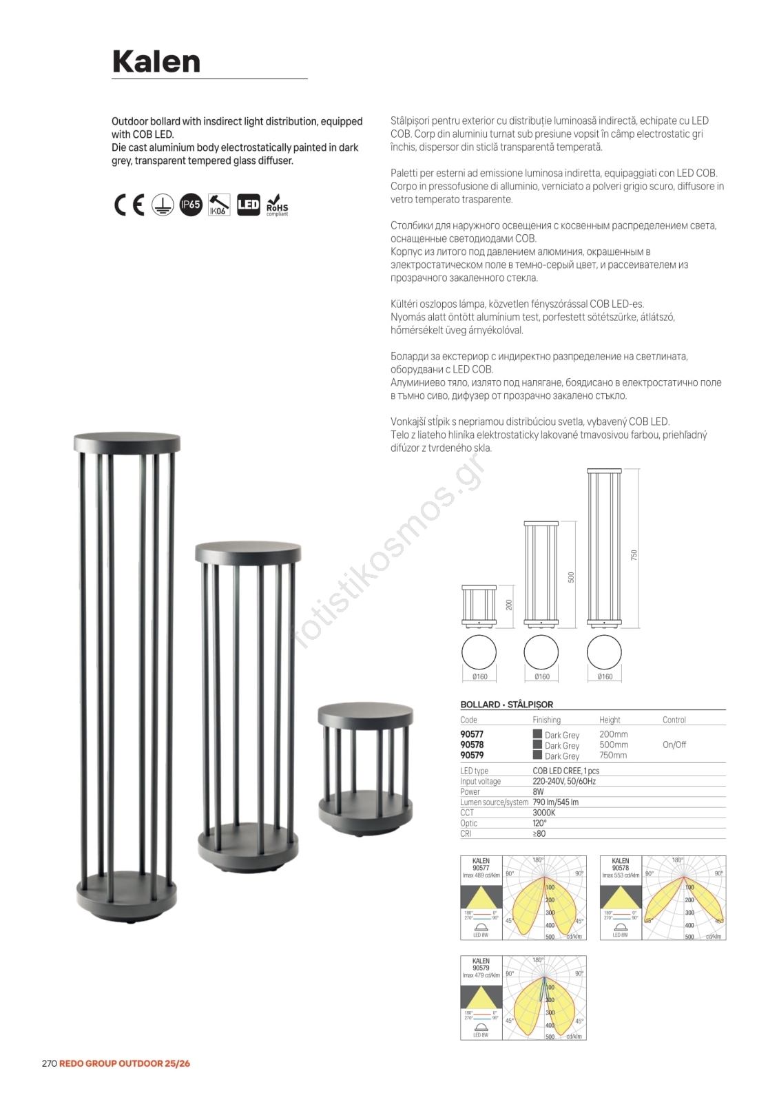 Redo 90578 - LED εξωτερικό φωτιστικό KALEN LED/8W/230V 3000K 50 cm IP65 ανθρακί