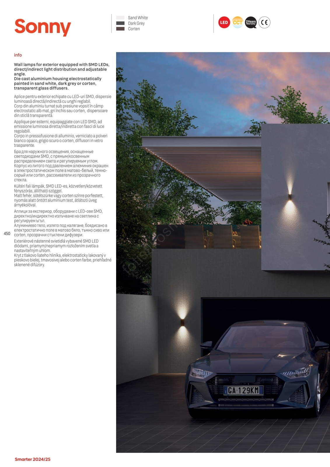 • Redo 90636 - Επιτοίχιο φωτιστικό εξωτερικού χώρου LED SONNY 2xLED/5W/230V 2200/3000/4000K IP54 ανθρακί