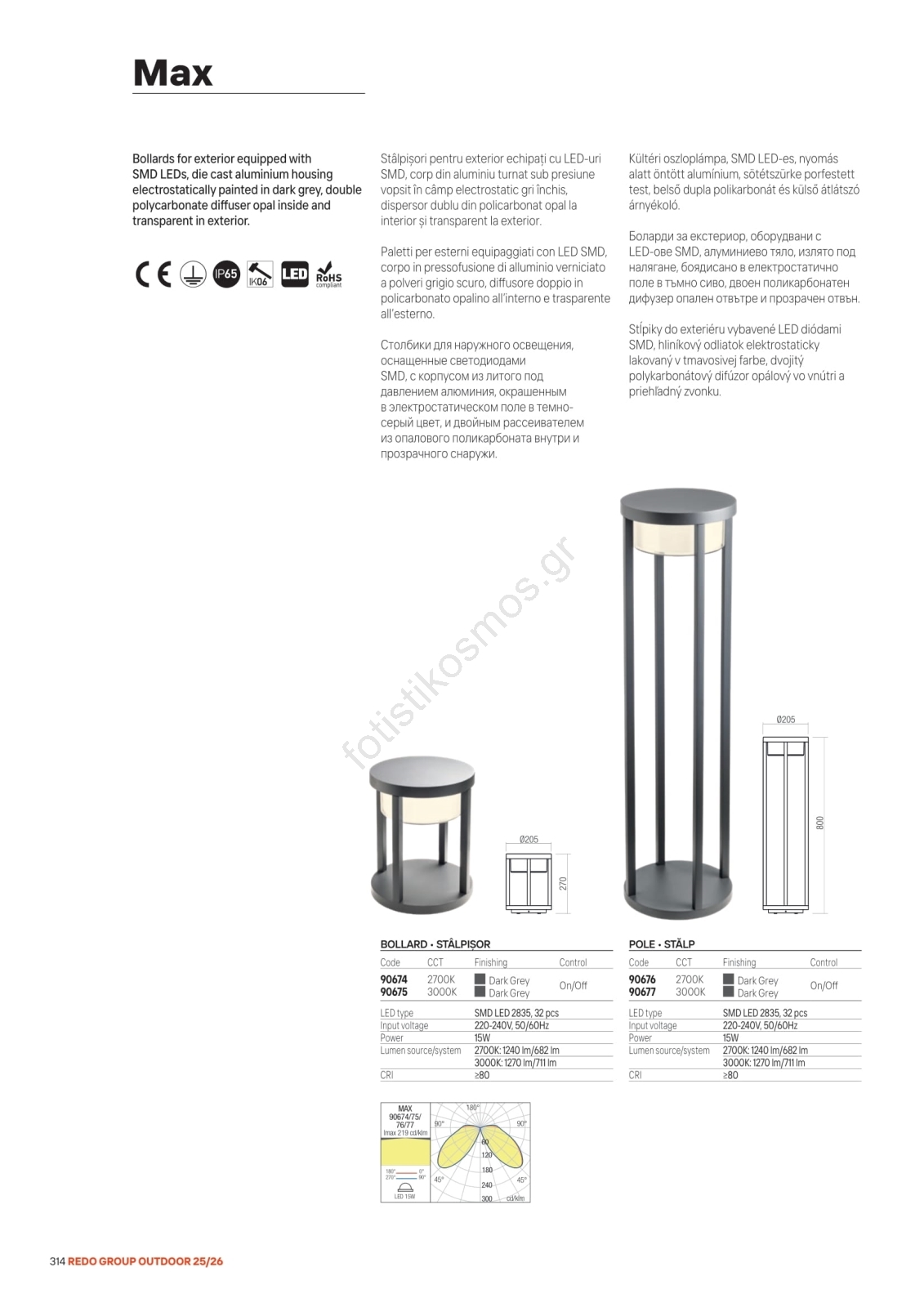 • Redo 90677 - Εξωτερικό φωτιστικό LED MAX/15W/230V 3000K 80 cm IP65 ανθρακί