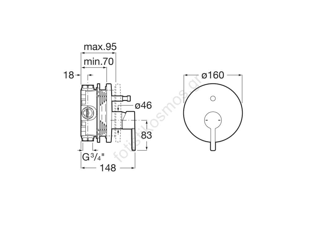 Roca A5A0B96C00 - Εντοιχιζόμενος μίκτης ντους NAIA, γυαλιστερό χρώμιο | Fotisti kosmos