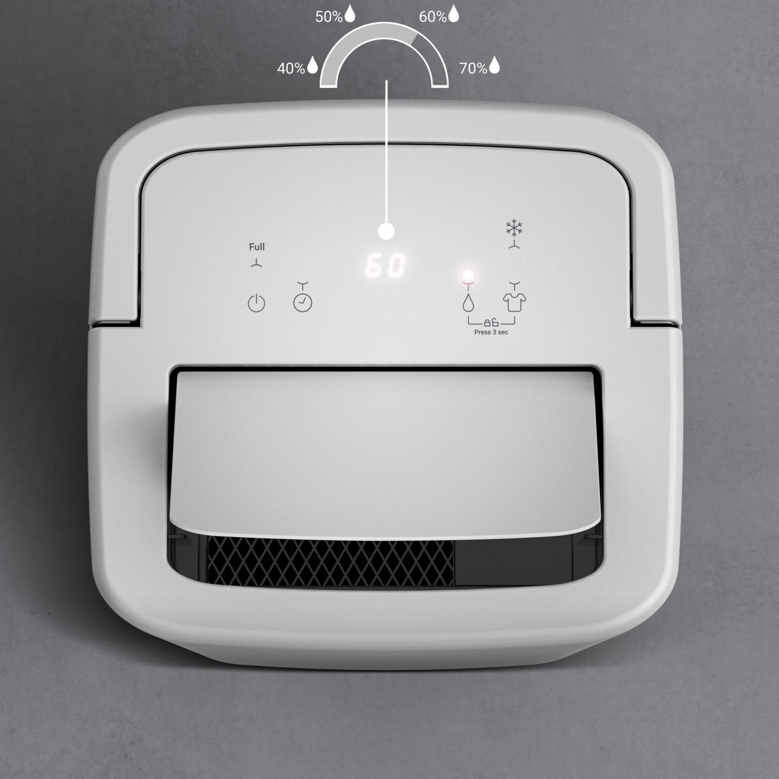 • Αφυγραντήρας με συμπαγείς διαστάσεις, που χωράει εύκολα σε κάθε σπίτι.