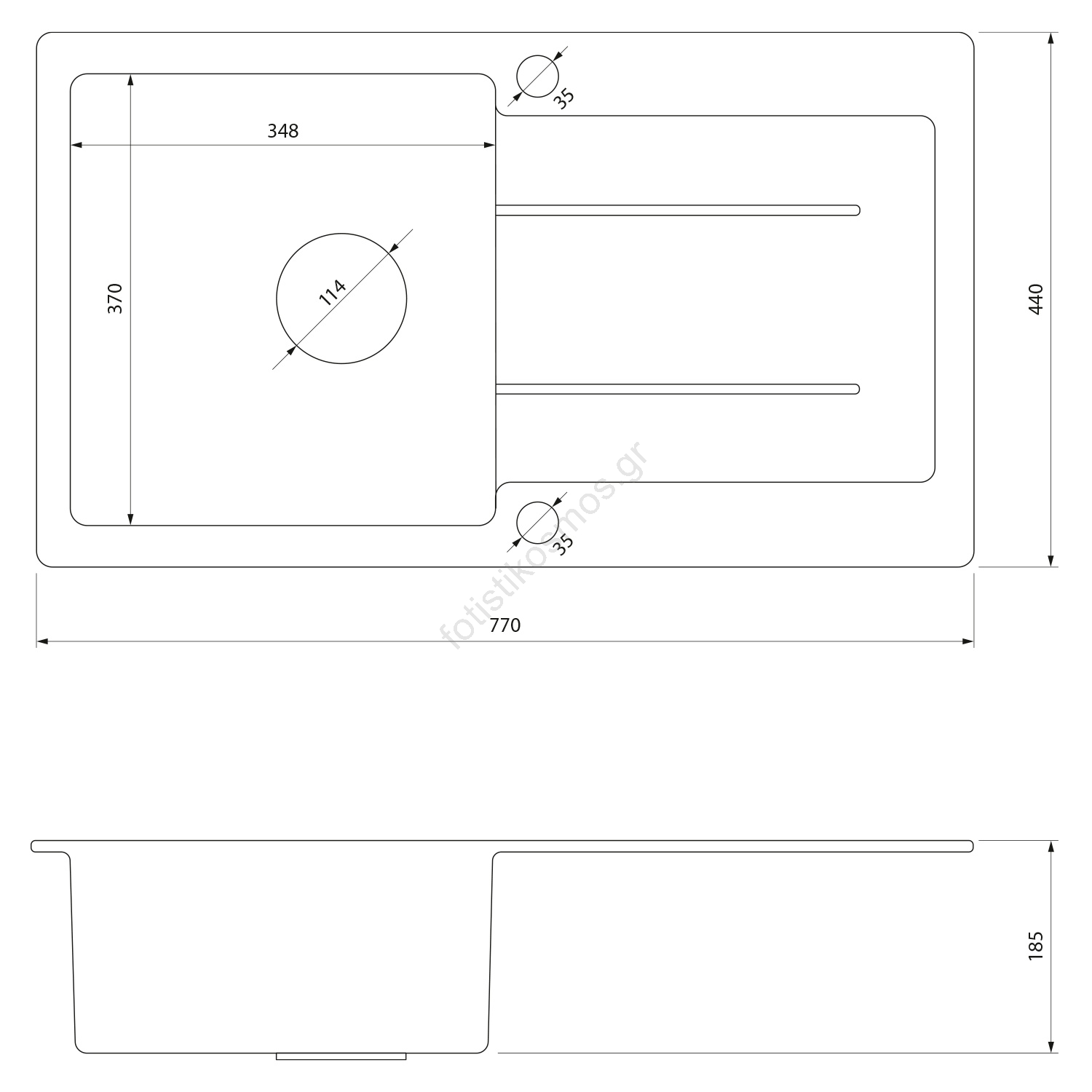 • Αυτός ο γρανιτένιος νεροχύτης είναι σχεδιασμένος για εντοιχισμό και διαθέτει επιφάνεια αποστράγγισης.