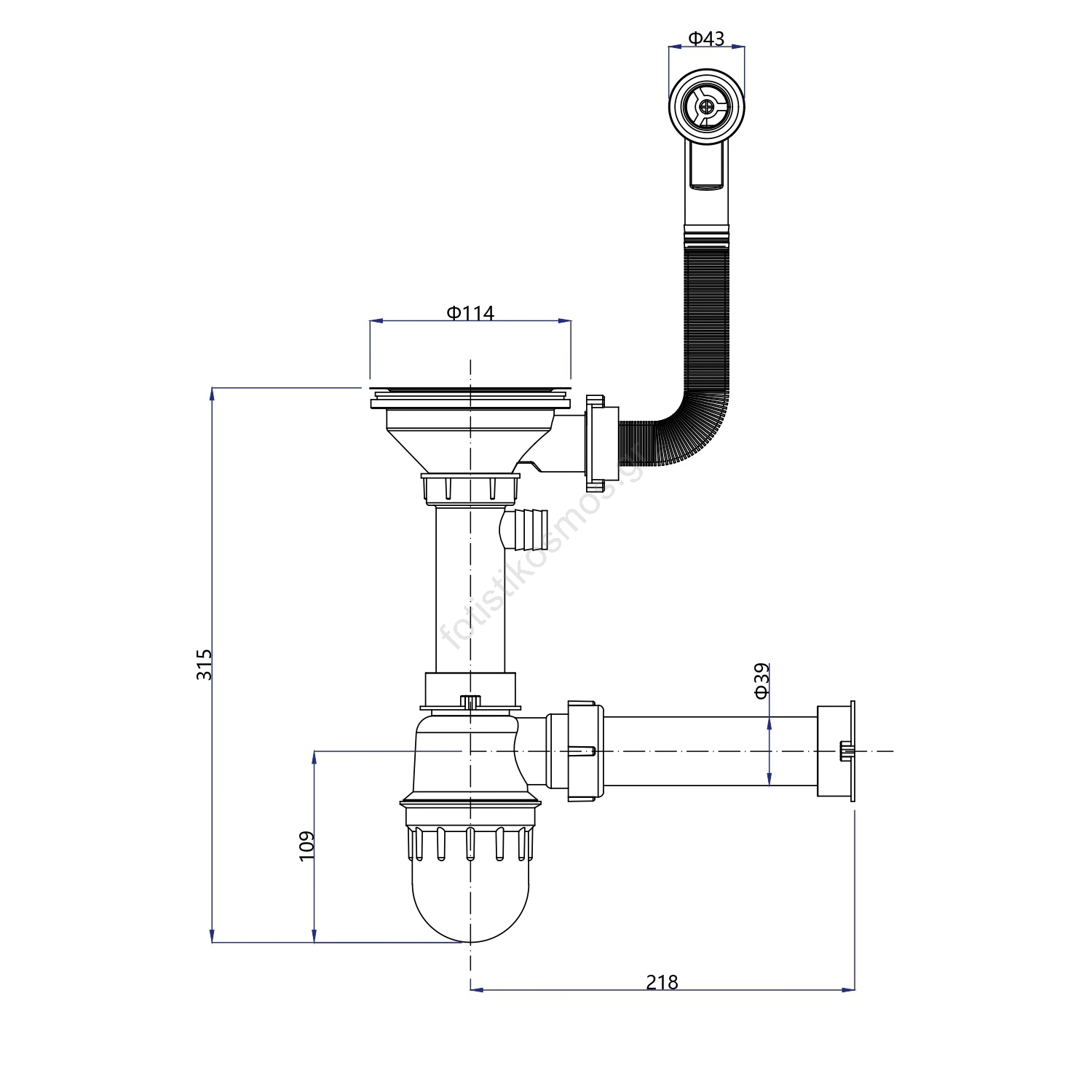 • Στη συσκευασία περιλαμβάνονται το καλάθι αποχέτευσης με σιφόνι και ένα πρότυπο για την κοπή.