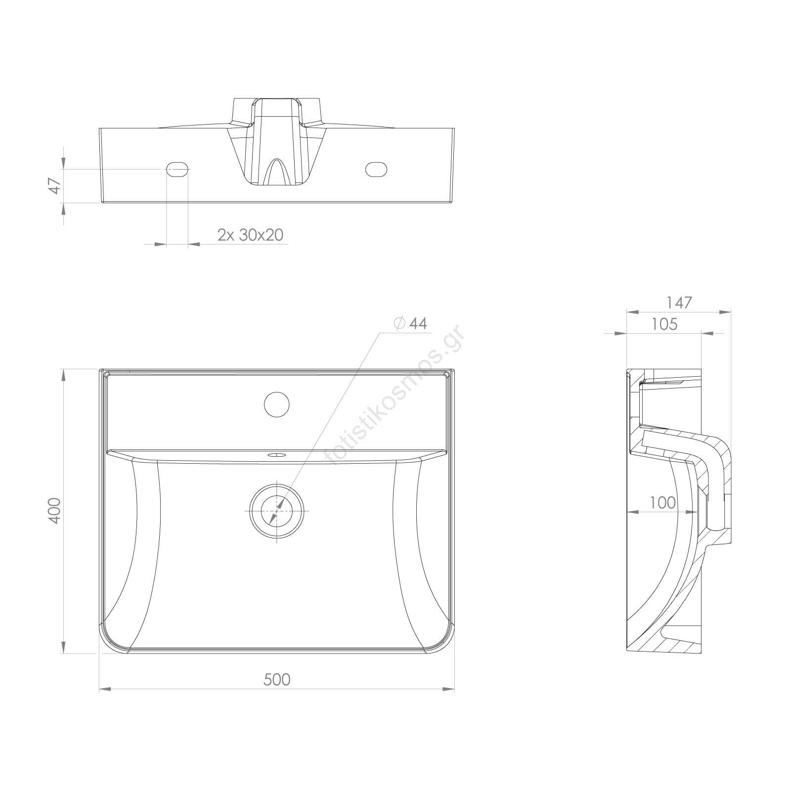 • Έχει διαστάσεις 500x400 mm και είναι σε λευκό χρώμα.