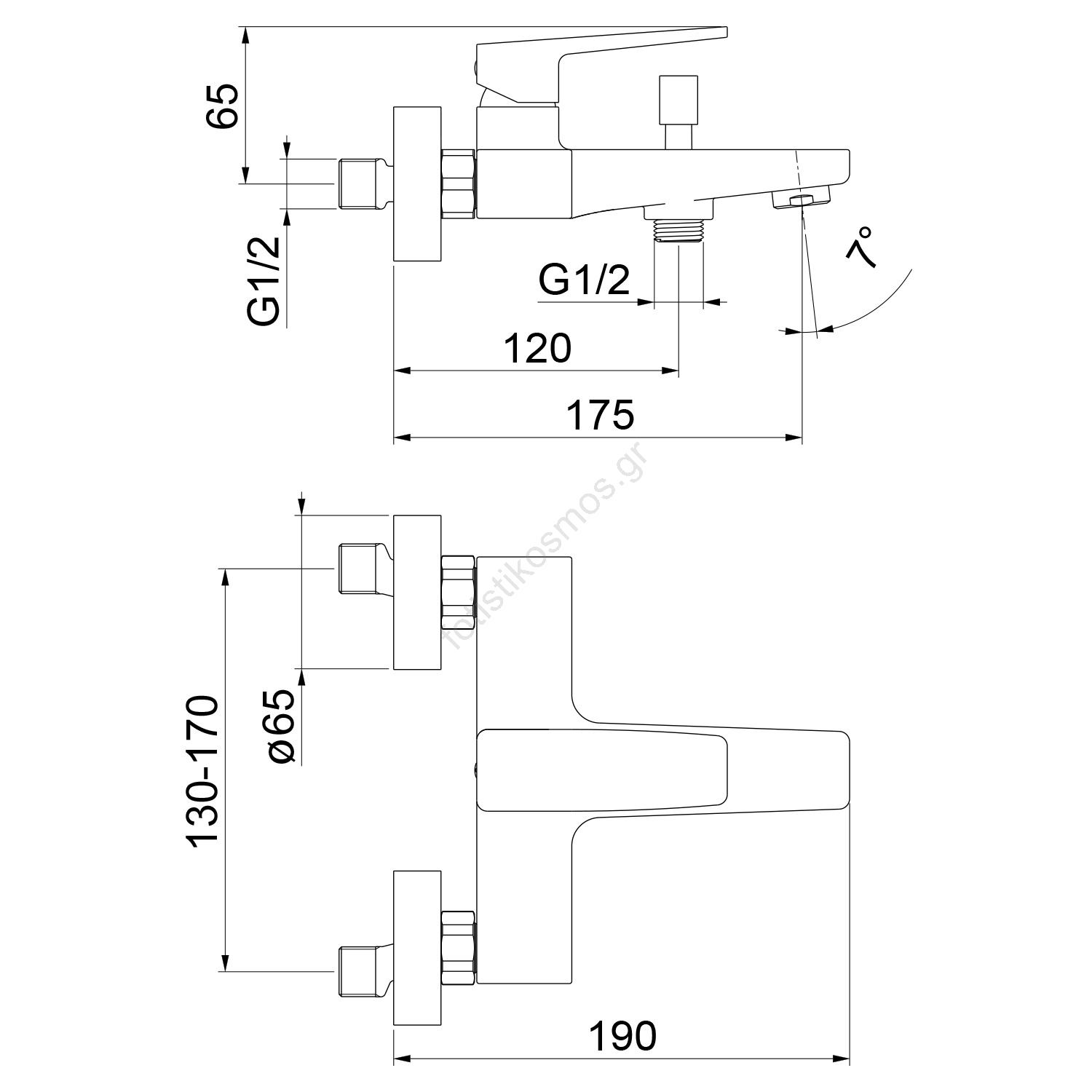 Sapho - Μίκτης μπανιέρας TURSI σε γυαλιστερό χρώμιο