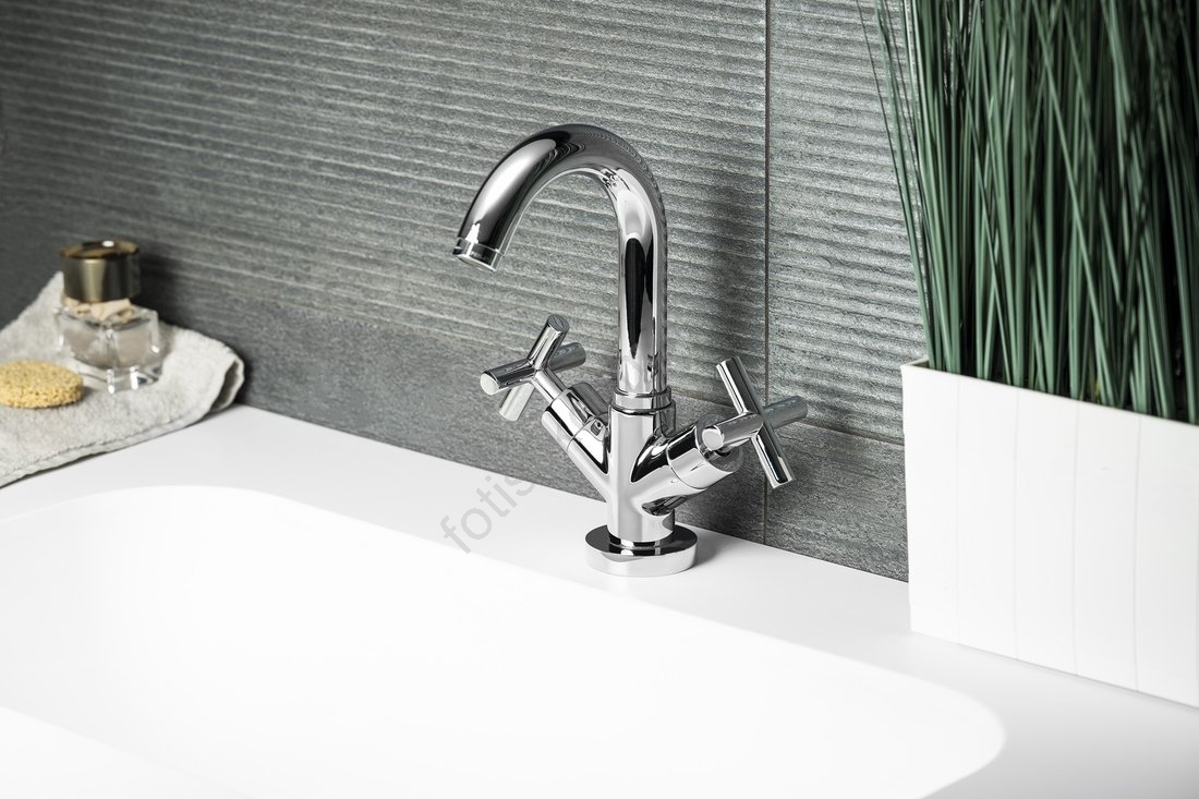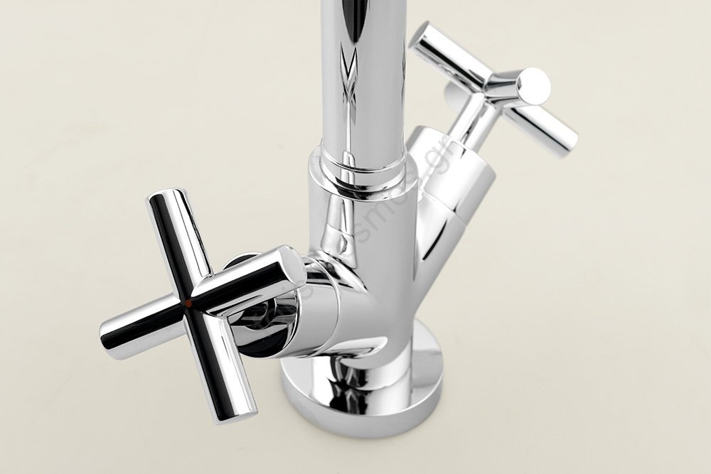 • Ο ελκυστικός και φρέσκος σχεδιασμός των βρυσών σε σχήμα σταυρού αποτελεί μια ξεχωριστή προσθήκη στο μπάνιο.