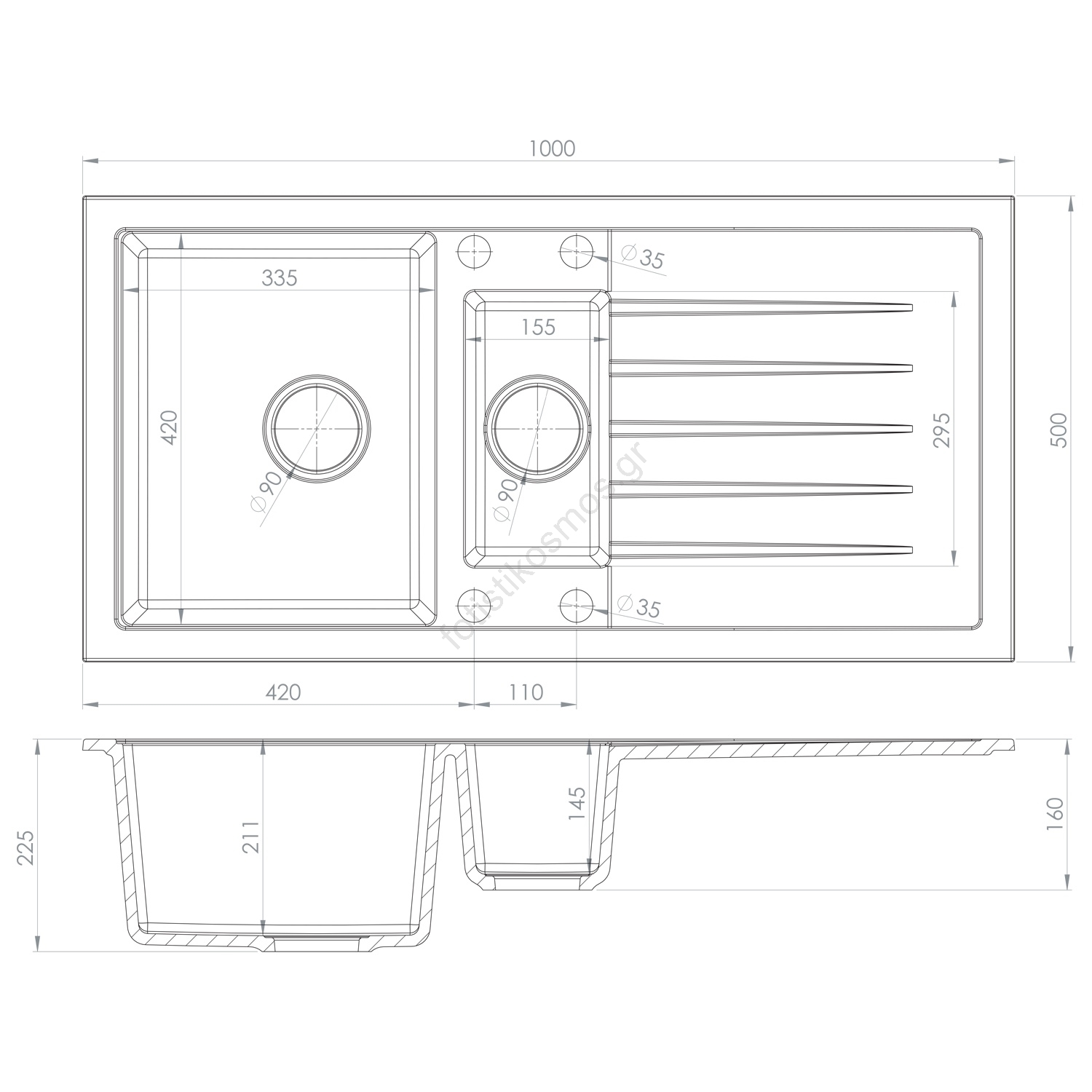 • Ο νεροχύτης είναι κατασκευασμένος από γρανίτη και διαθέτει επιφάνεια αποστράγγισης.