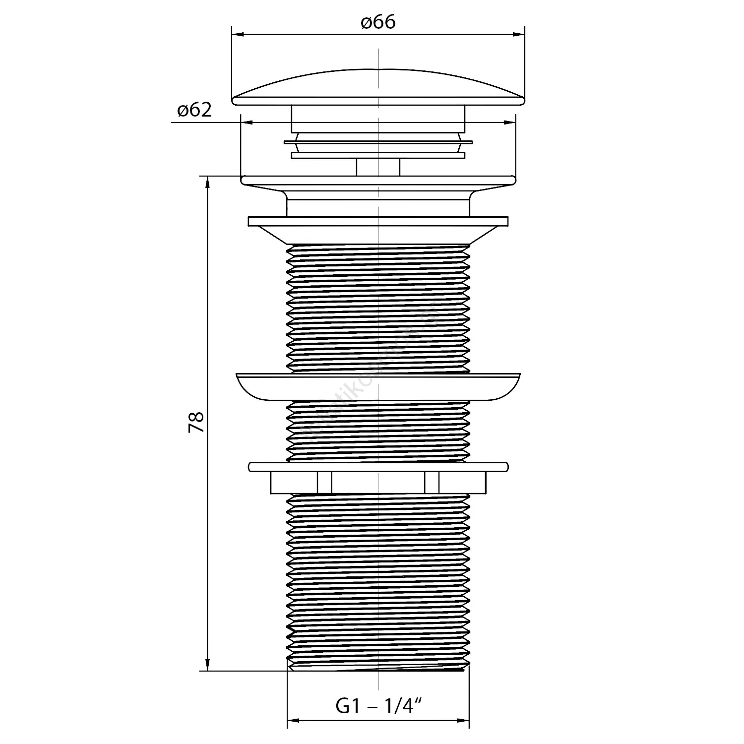 • Το μέγεθος σπειρώματος είναι 5/4" και το πώμα κλείνει πλήρως — κατάλληλο για νιπτήρες χωρίς υπερχείλιση.