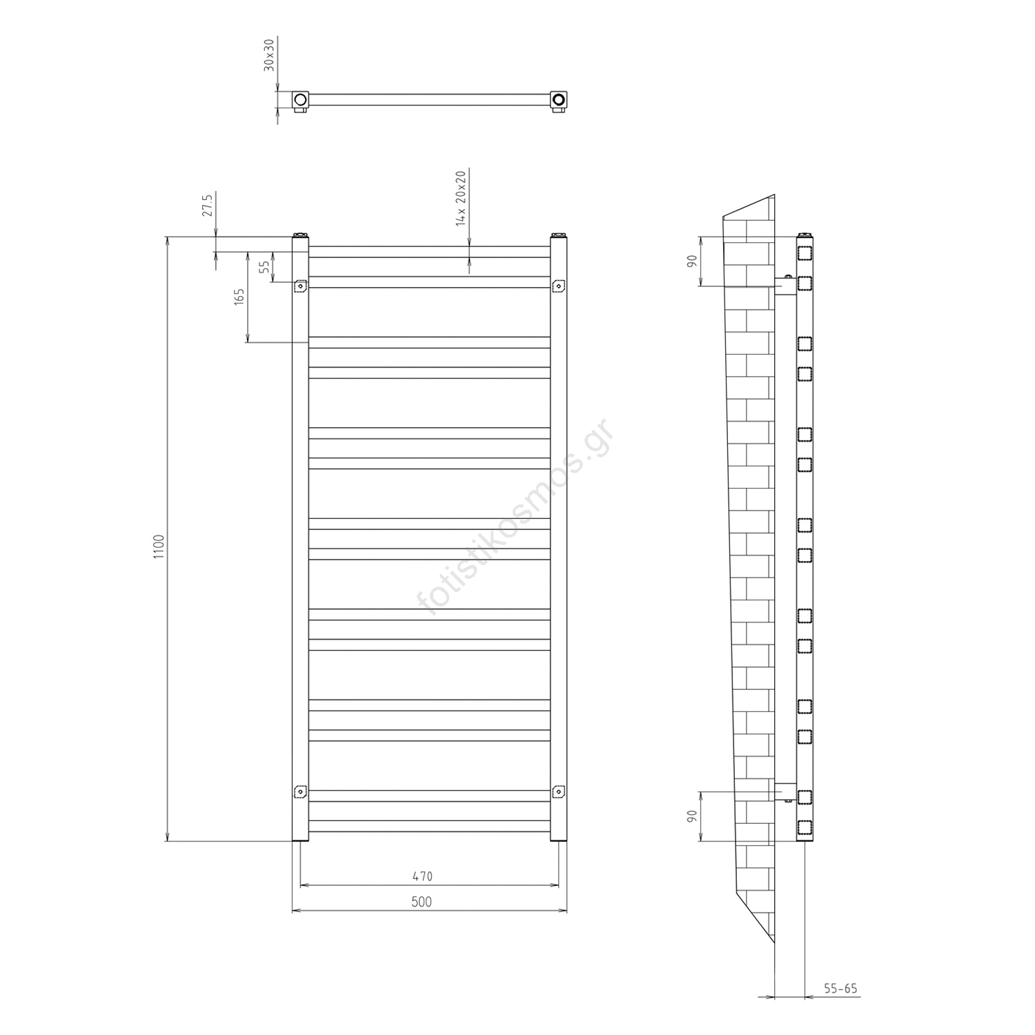 Sapho - Θερμαντικό σώμα μπάνιου METRO DOS  110x50 cm ματ μαύρο