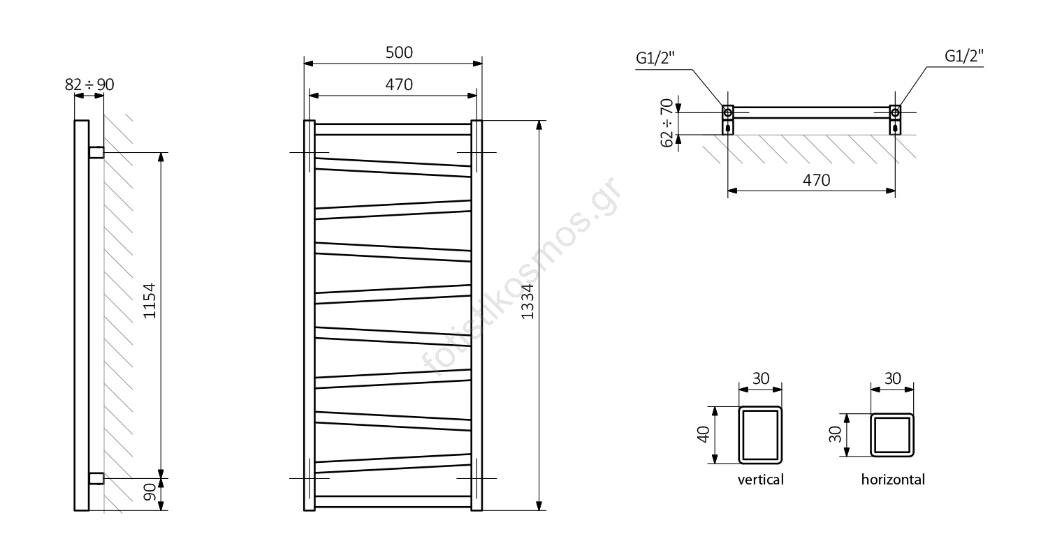 Sapho - Θερμαντικό σώμα μπάνιου ZIG 133x50 cm ανθρακί