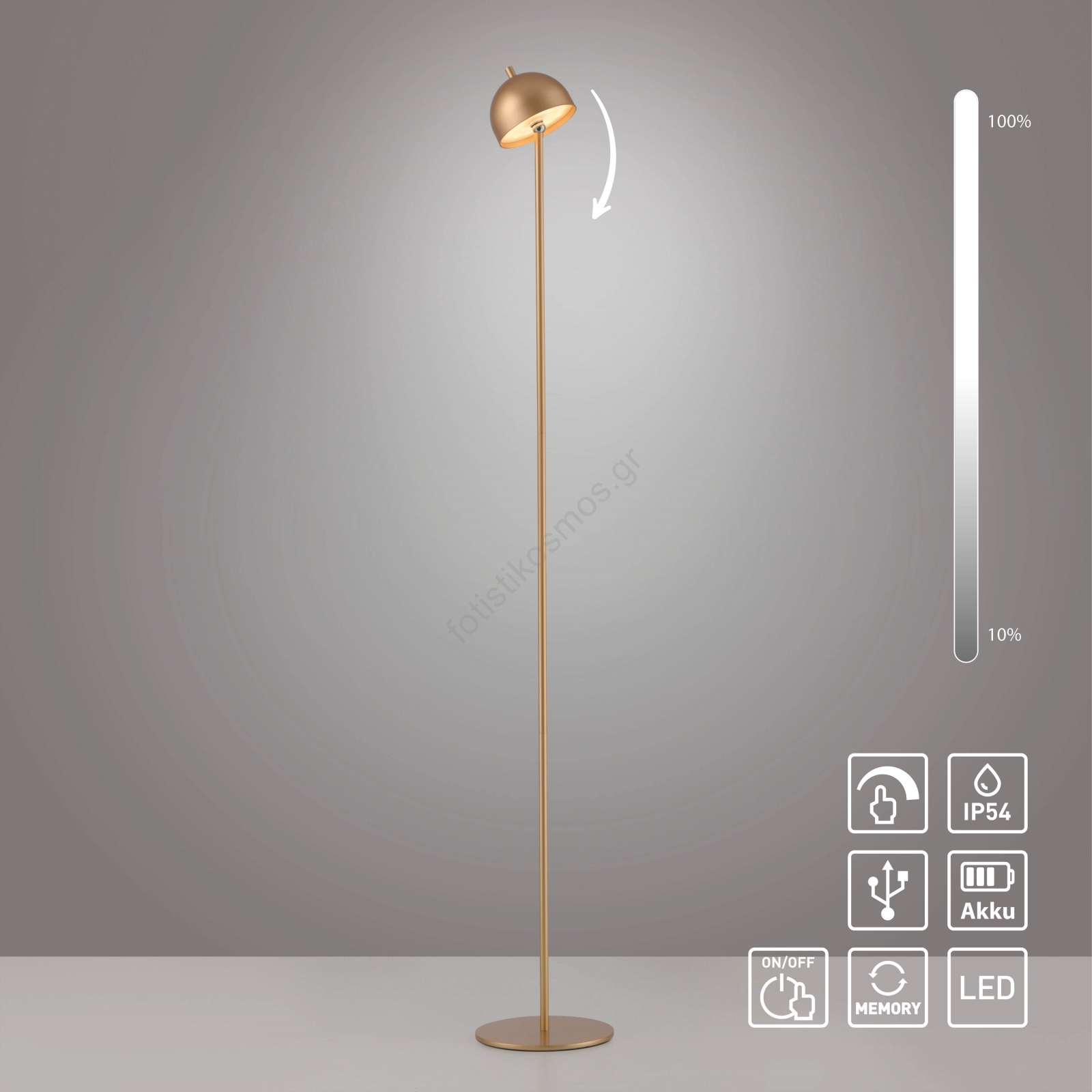 Schöner Wohnen 19245-12 - Εξωτερικό επιδαπέδιο φωτιστικό LED BELLIS, ρυθμιζόμενης φωτεινότητας, επαναφορτιζόμενο με λειτουργία αφής, LED/2,5W/5V 2600 mAh IP54 χρυσό