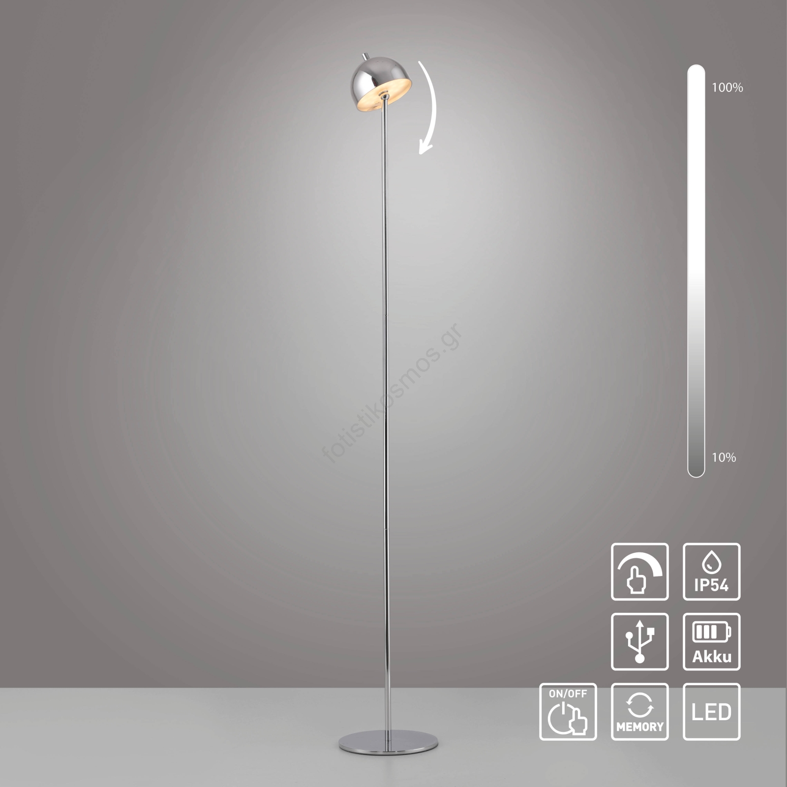 • Schöner Wohnen 19245-17 - Ρυθμιζόμενη, με έλεγχο αφής, επαναφορτιζόμενη εξωτερική επιδαπέδια λάμπα LED BELLIS LED/2,5W/5V 2600 mAh IP54 γυαλιστερό χρώμιο
