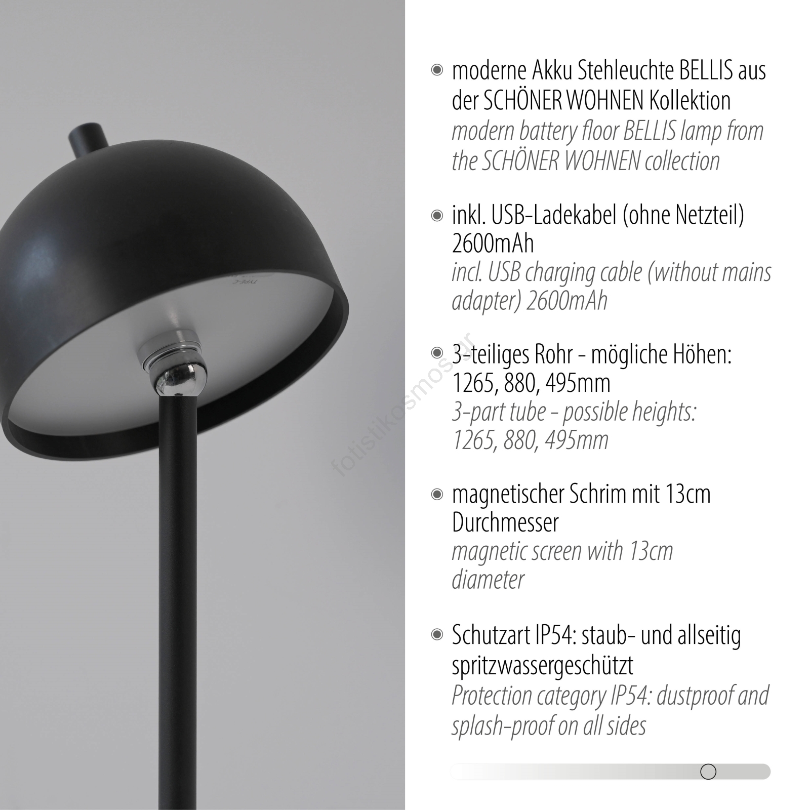• Schöner Wohnen 19245-18 - Ρυθμιζόμενη LED εξωτερική επιδαπέδια λάμπα BELLIS, επαναφορτιζόμενη με έλεγχο αφής, LED/2,5W/5V 2600 mAh IP54, μαύρο