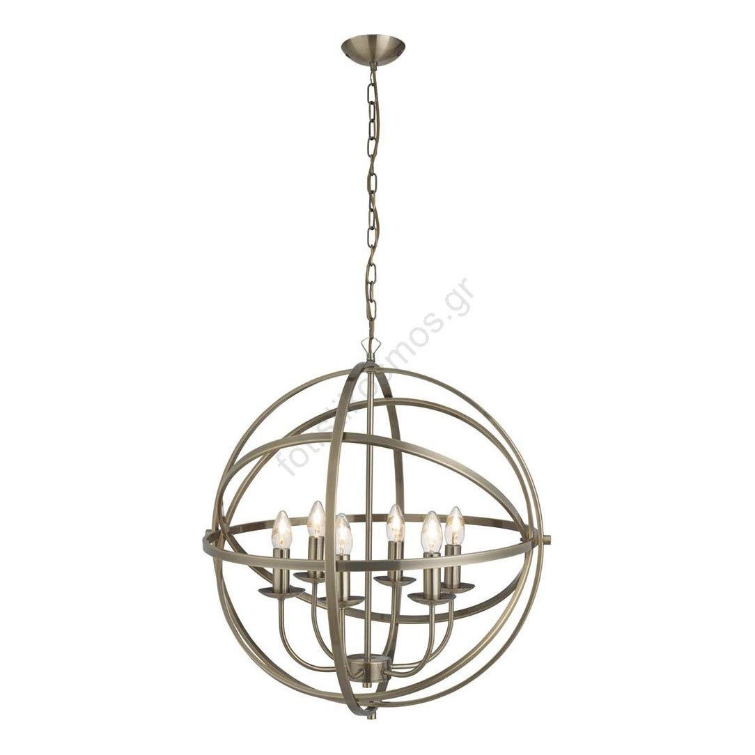 Searchlight 2476-6AB - Πολυέλαιος με αλυσίδα ORBIT 6xE14/60W/230V με φινίρισμα ορείχαλκου | Fotisti
