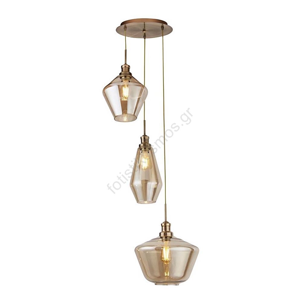 Searchlight 5423-3AB - Κρεμαστό φωτιστικό οροφής τρίφωτο MIA 3xE27/60W/230V ορείχαλκος | Fotisti kos