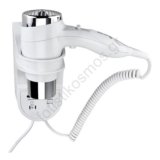 • Επιτοίχιο πιστολάκι μαλλιών με ενσωματωμένη βάση για εξοικονόμηση χώρου στο μπάνιο.