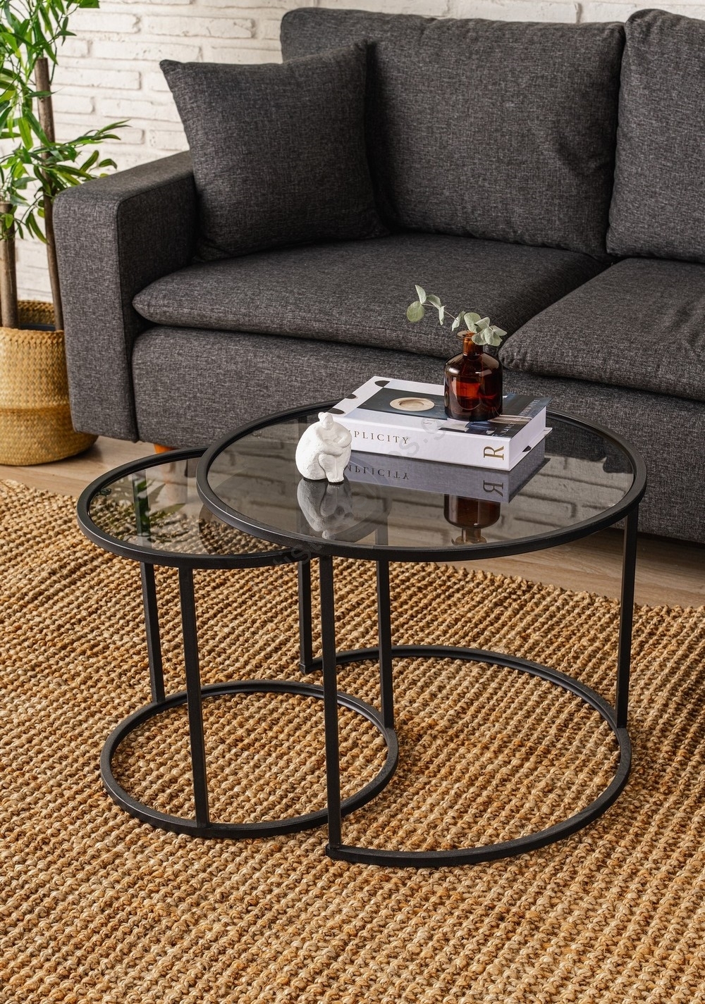 ΣΕΤ 2x Τραπεζάκι σαλονιού TOKYO διάμετρος 42/60 cm μαύρο