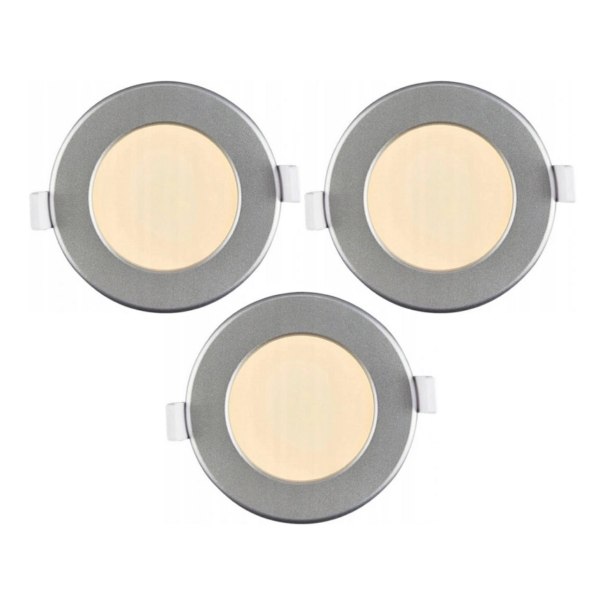 Σετ 3 εντοιχισμένα φωτιστικά LED για μπάνιο, 6W, 230V, IP44, ασημί