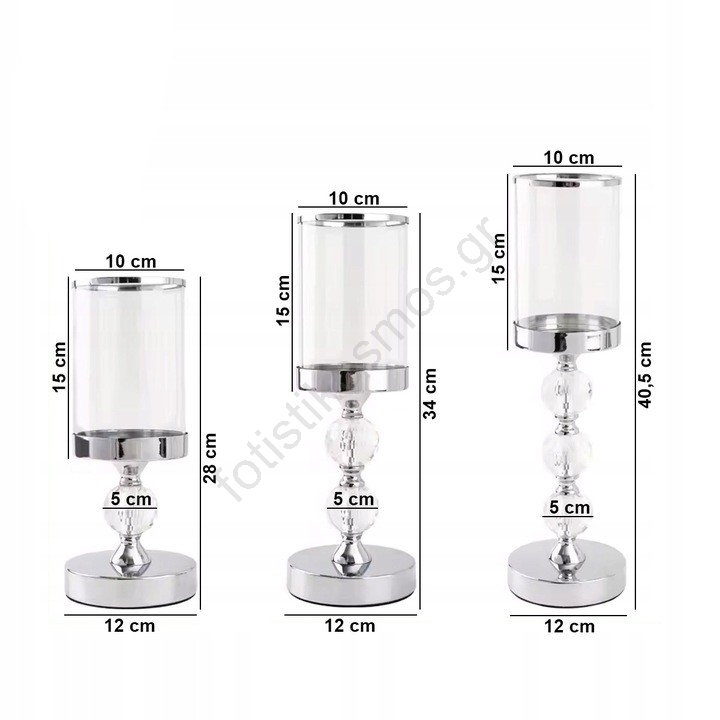 Σετ 3 κηροπήγια σε γυαλιστερό χρώμιο | Fotisti kosmos