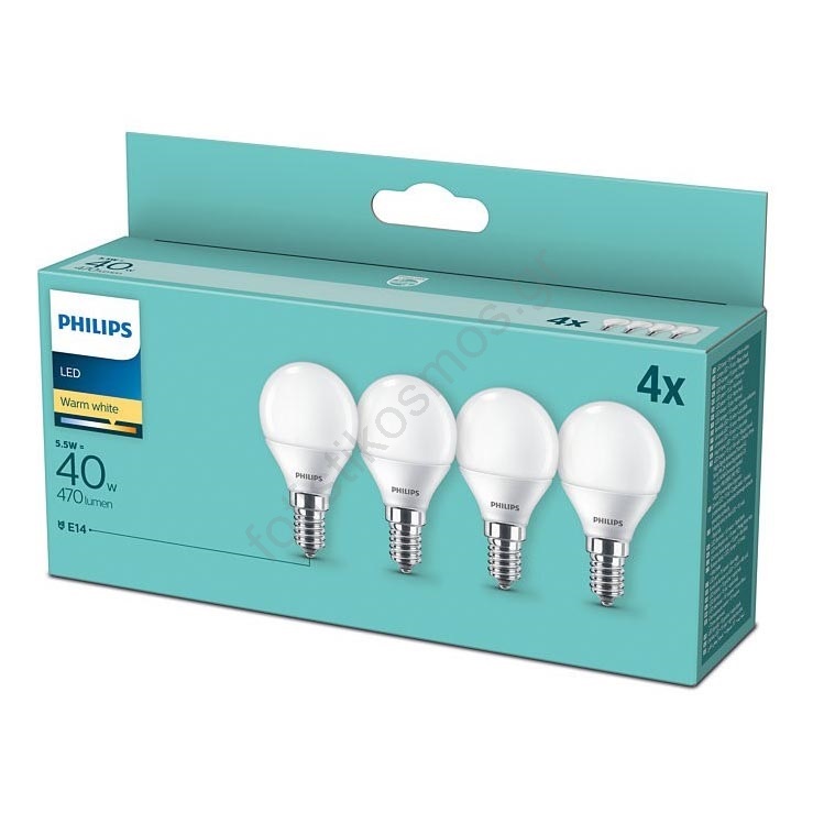 ΣΕΤ 4x LED Λαμπτήρας Philips P45 E14/5,5W/230V 2700K | Fotisti kosmos