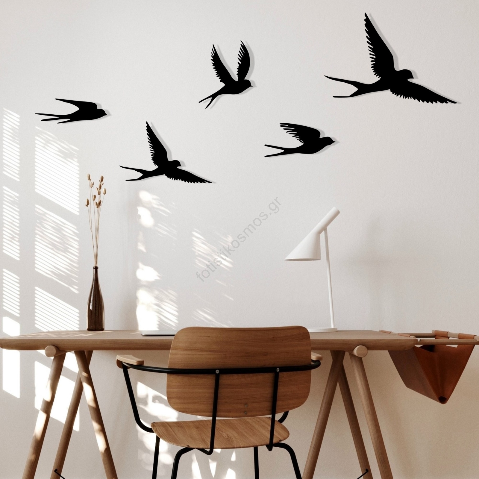 ΣΕΤ 5x Διακοσμητικό τοίχου πουλιά μεταλλικό | Fotisti kosmos