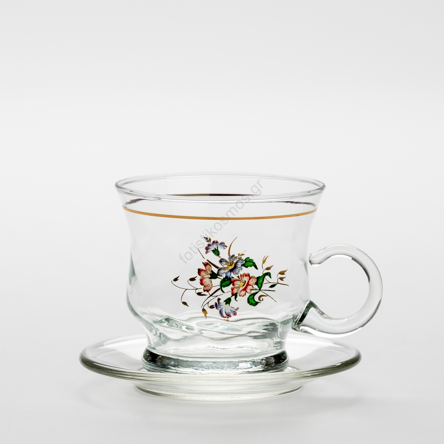 Σετ 6x γυάλινο φλιτζάνι με πιατάκι διαφανές μπουκέτο αρ. 2 | Fotisti kosmos