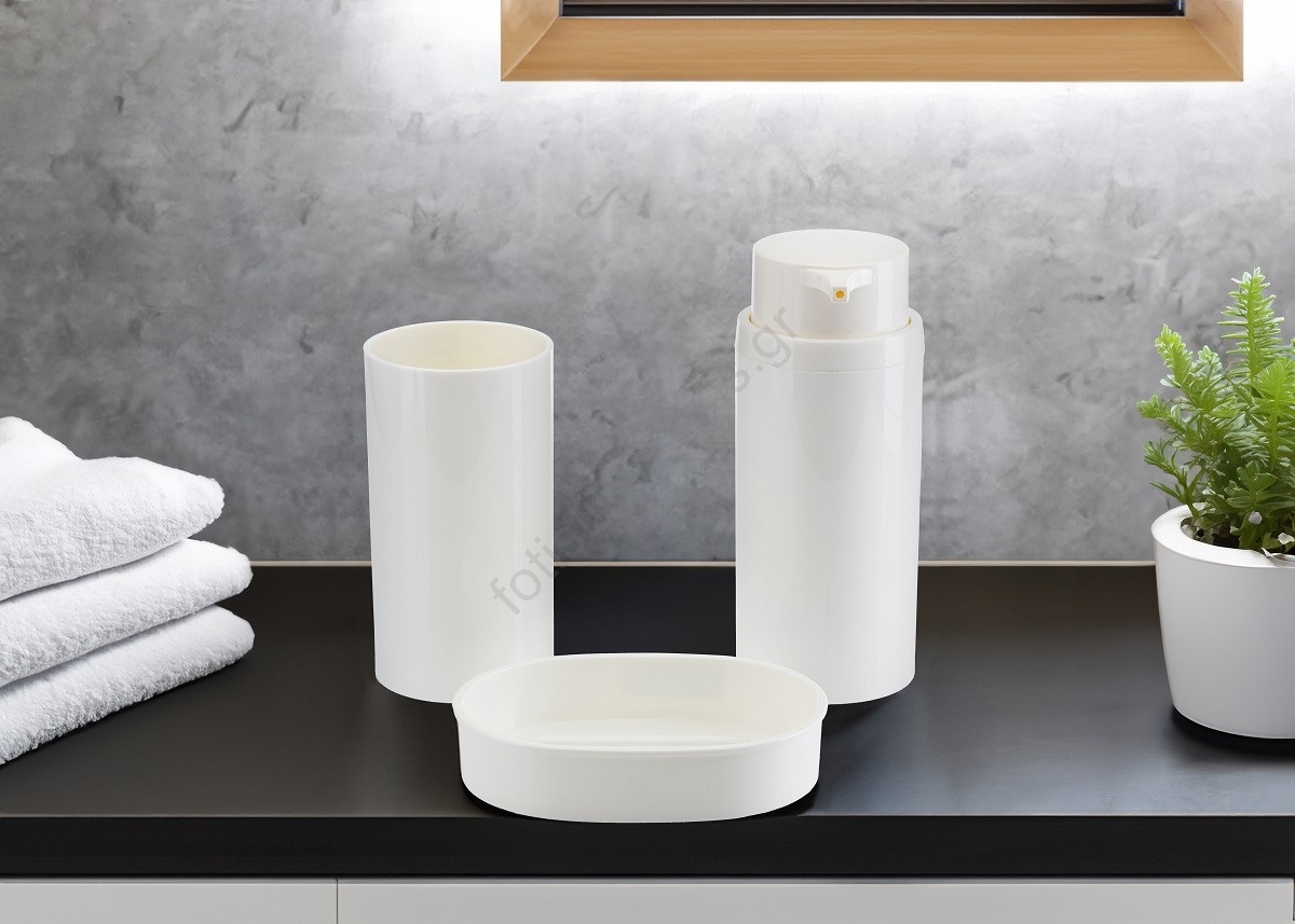 • Το σετ περιλαμβάνει: διανομέα σαπουνιού, σαπουνοθήκη, ποτηράκι για οδοντόβουρτσα και οδοντόκρεμα, κάδο απορριμμάτων και βούρτσα τουαλέτας.