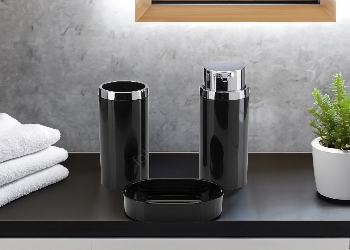 • Σετ μπάνιου CARMEN 5 τμχ μαύρο/γυαλιστερό χρώμιο