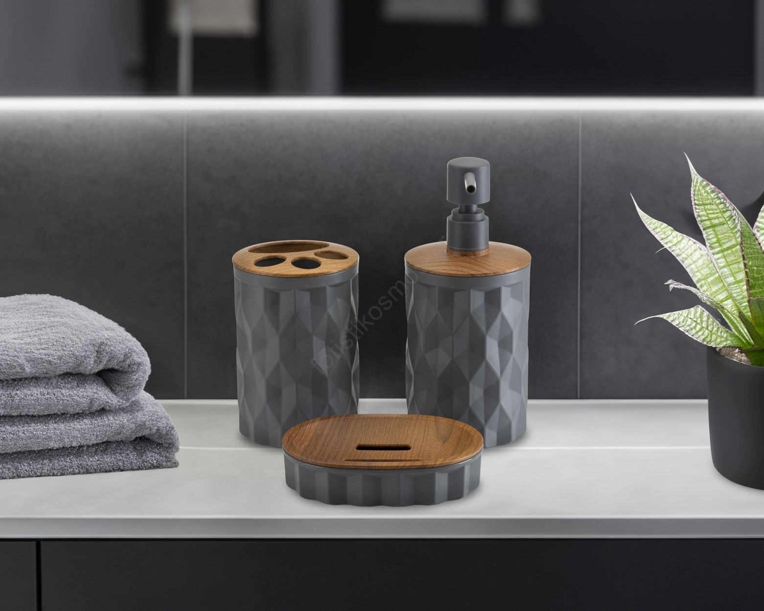 Σετ μπάνιου REINA 5 τμχ ανθρακί/καφέ | Fotisti kosmos