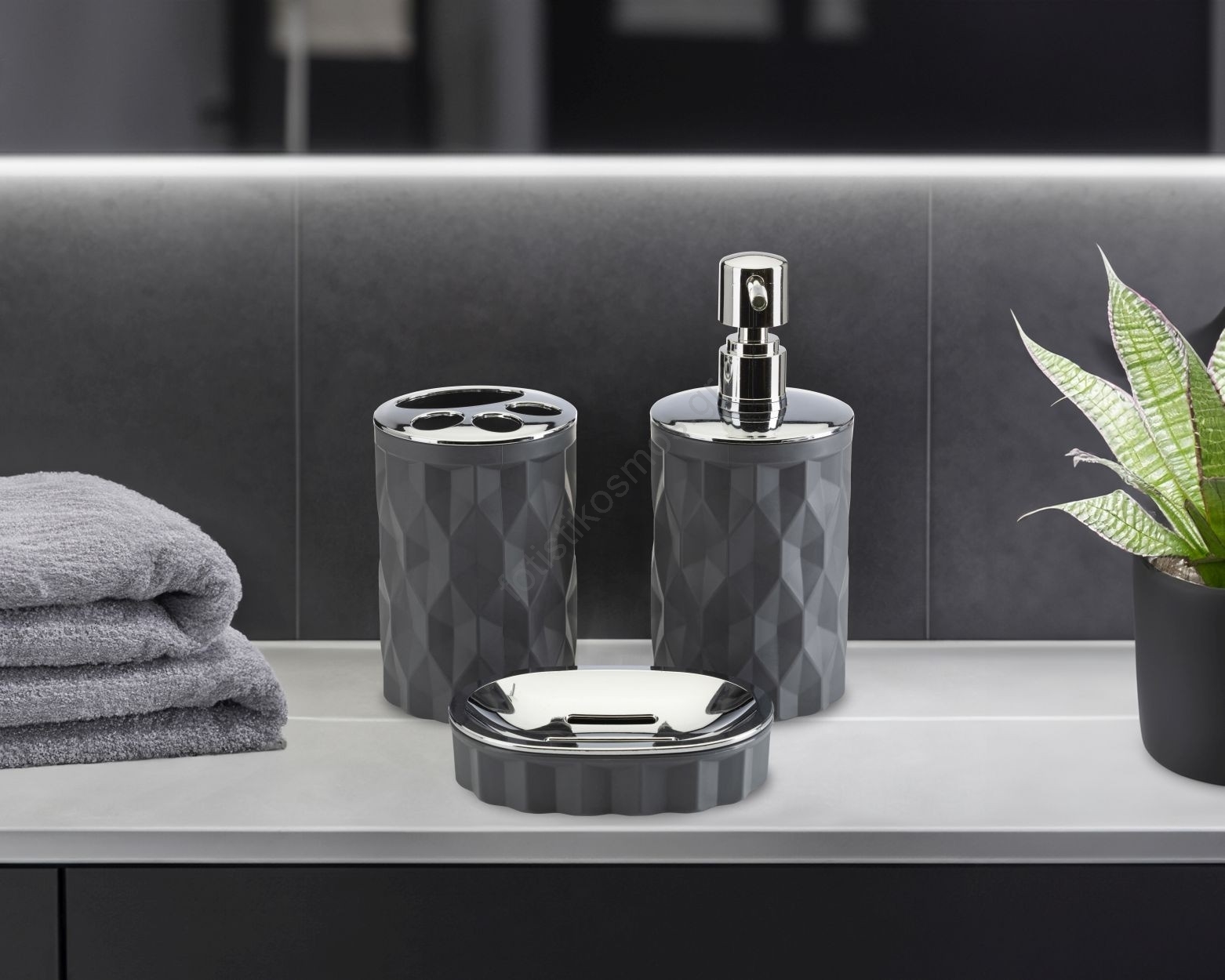 Σετ μπάνιου REINA 5 τμχ ανθρακί/χρώμιο | Fotisti kosmos