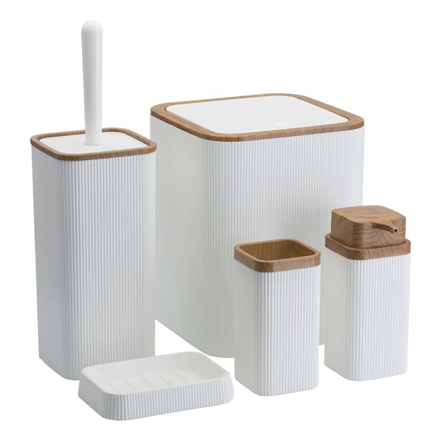 • Σετ μπάνιου WAVE 5 τμχ λευκό/καφέ