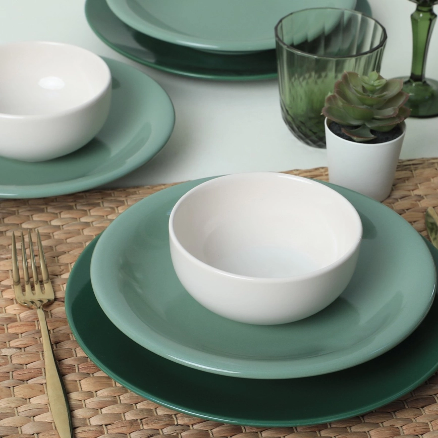 Σετ φαγητού 18 τεμ. πράσινο/λευκό/κεραμικό