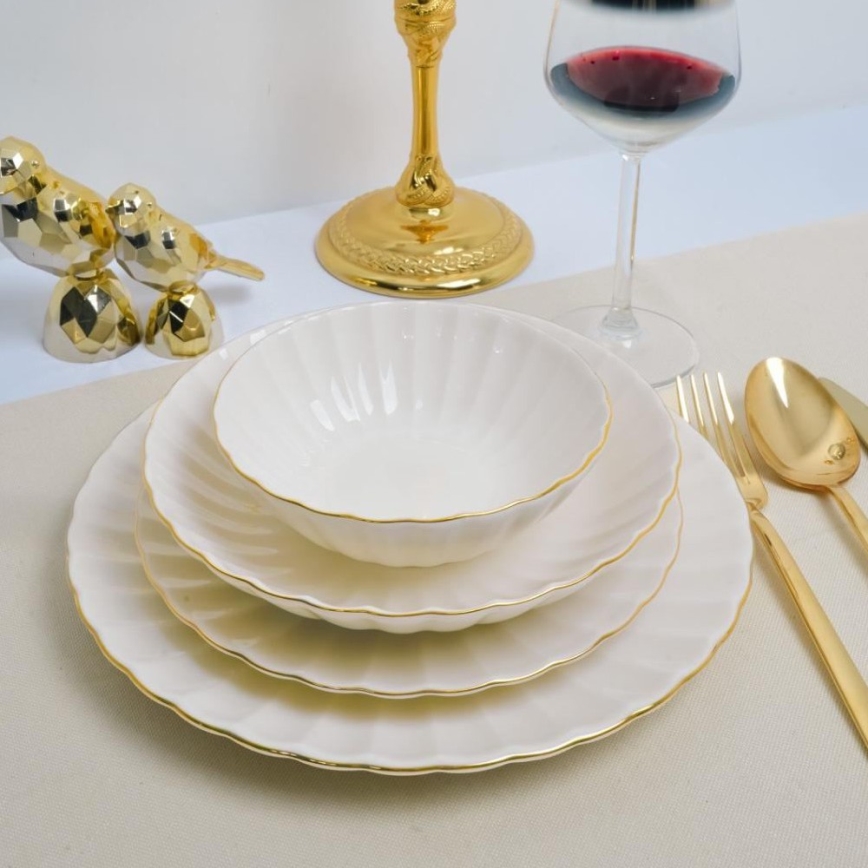 • Σετ φαγητού 8 τεμ., πορσελάνη — λευκό με χρυσές λεπτομέρειες