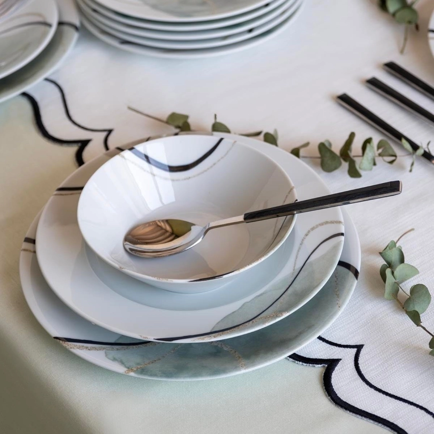 Σετ πιάτων 24 τεμ. γκρι/πράσινο/πορσελάνη