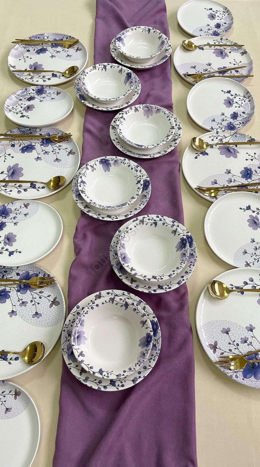 Σετ πιάτων 24 τεμ. λευκό/μοβ/κεραμικό