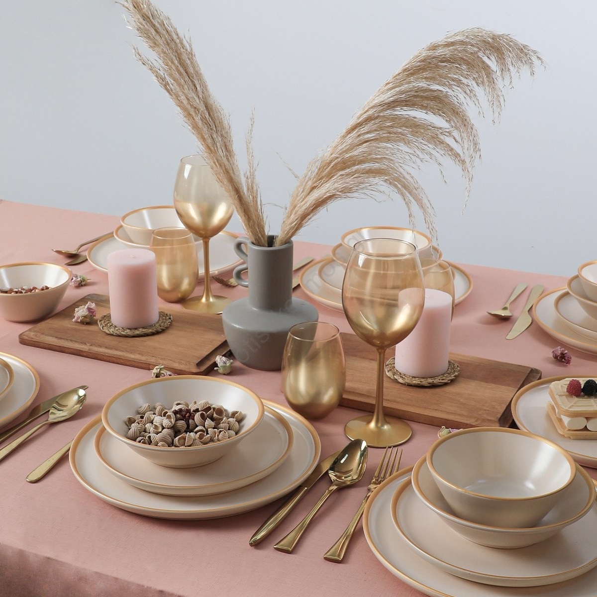 Σετ πιάτων 24 τεμ. μπεζ/κεραμικό | Fotisti kosmos
