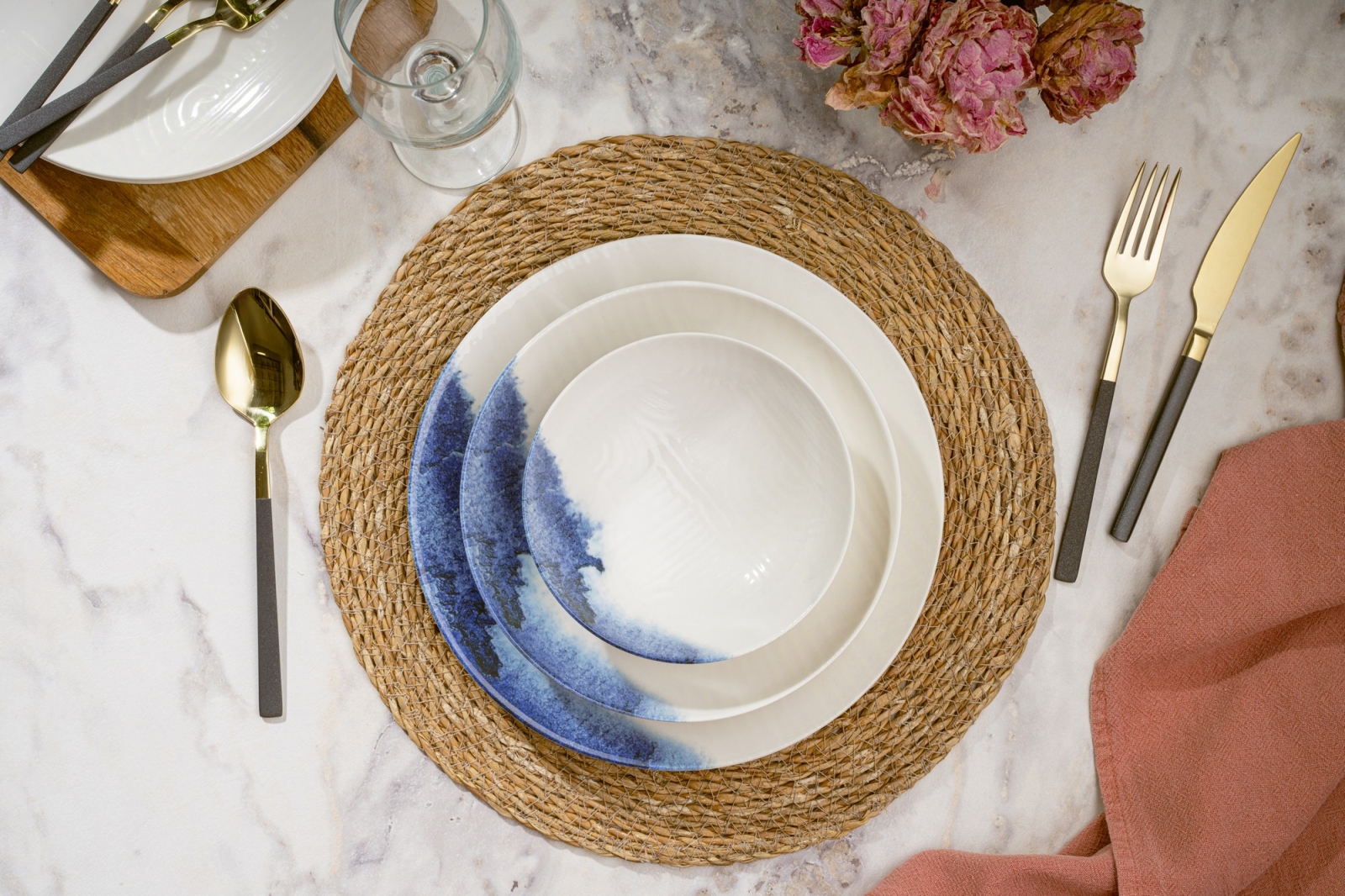 Σετ πιάτων 24 τεμ. κρεμ/μπλε/πορσελάνη