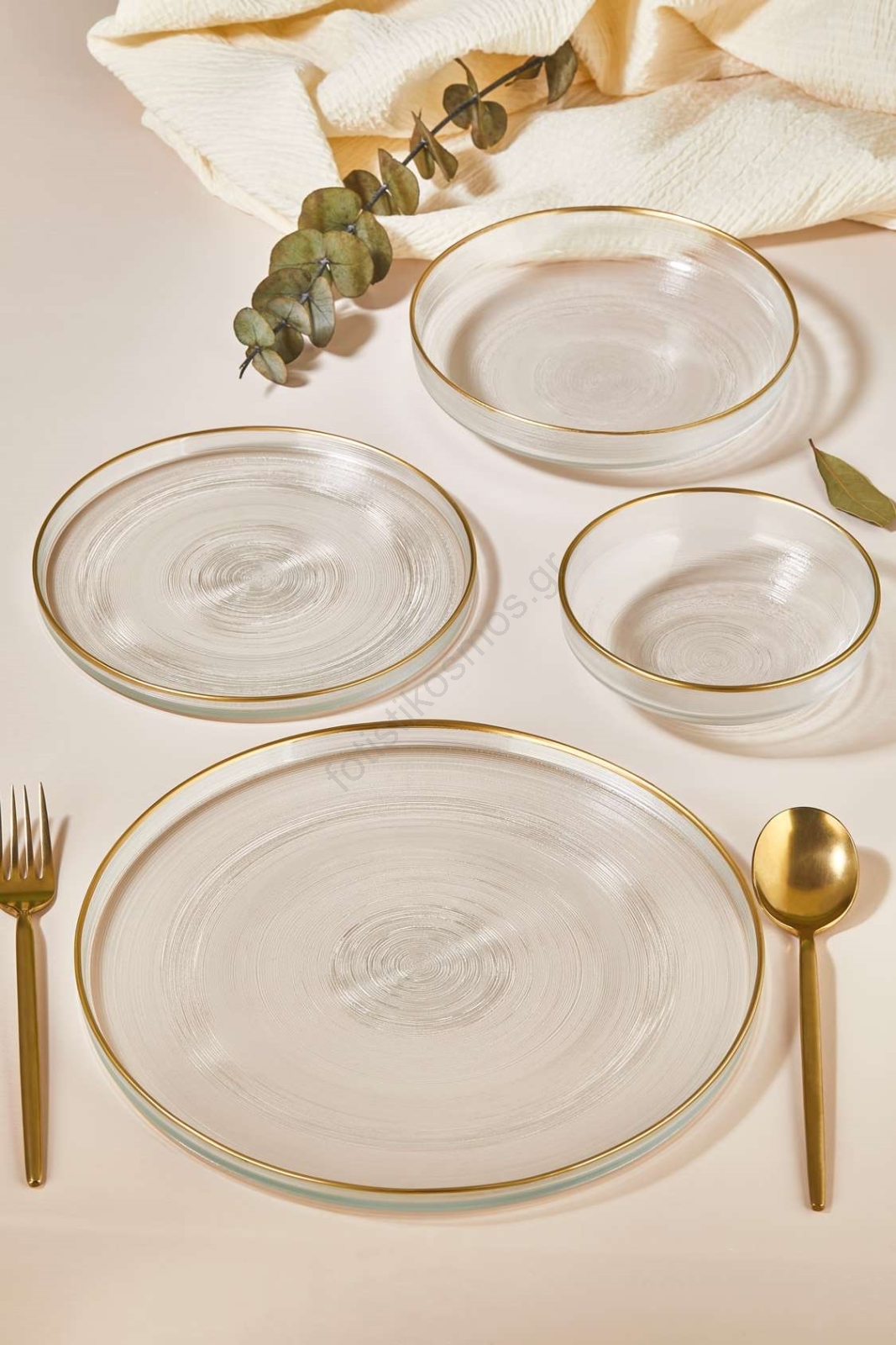 Σετ τραπεζαρίας 24 τεμ. διάφανο/χρυσό/γυάλινο | Fotisti kosmos