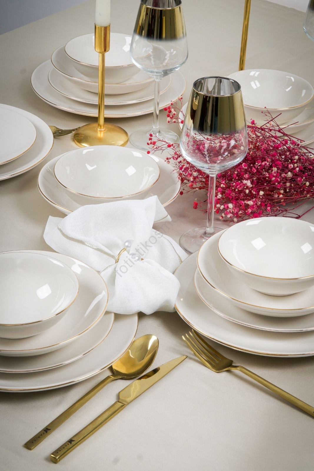 Σετ τραπεζαρίας 24 τεμ. λευκό/χρυσό/πορσελάνη