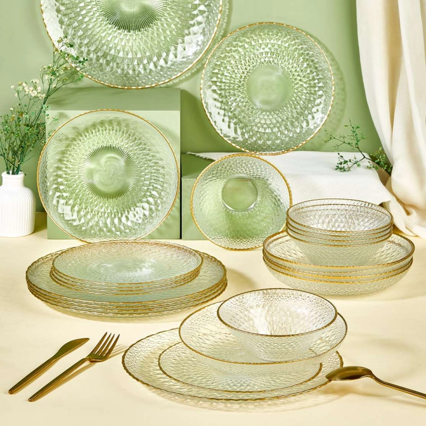 Σετ τραπεζαρίας 24 τεμαχίων από διάφανο γυαλί με χρυσές λεπτομέρειες