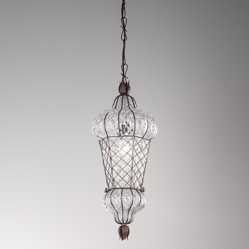 • SIRU - Κρεμαστό φωτιστικό οροφής BABÀ 1xE27/60W/230V διάμετρος 30 cm διαφανές/καφέ Venetian Γυαλί