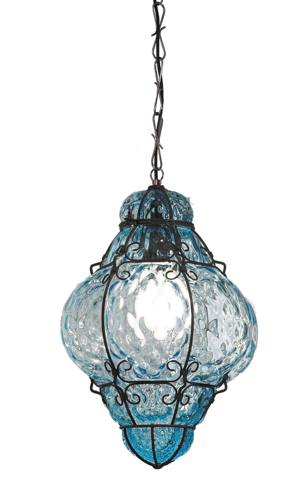 • SIRU- Κρεμαστό φωτιστικό οροφής CLASSIC 1xE27/60W/230V διάμετρος 30 cm μπλε/μαύρο Venetian Γυαλί